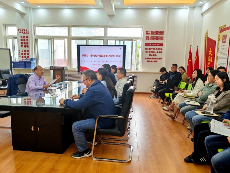 李常锋以“全面从严治党永远在路上,党的自我革命永远在路上”为题,对新修订的《中国共产党纪律处分条例》进行解读,为党员阐释了开展党纪学习教育的重大意义。他强调,《中国共产党纪律处分条例》是促进全党深刻领悟“两个确立”的决定性意义、坚决做到“两个维护”的必然要求;是坚持问题导向,用严明纪律管党治党的现实需要;是从严治党管党,实现制度与时俱进的实践要求。