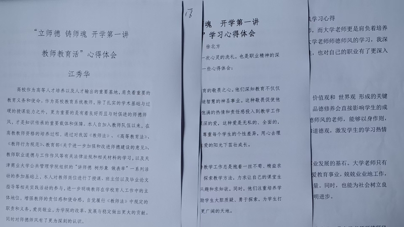 蔡军老师说,作为一名教师,要用心对待学生,没有教不好的学生,只有不会教的老师,教师应该守好本分,严谨、认真地对待每一堂课。岳丽丹老师说,在教学中,老师要不断更新自己的知识体系,为学生讲解最前沿的专业知识。张芝荣老师说,师德对学生的影响非常重要,教师是个良心职业,要从自己的良心出发,做好自己的分内事。