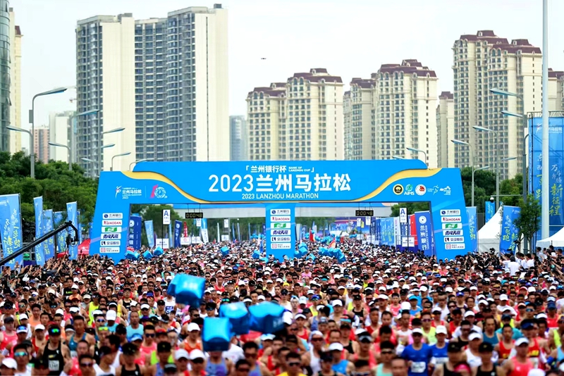 由中国田径协会认定、甘肃省体育局、兰州市人民政府共同主办的2023兰州马拉松赛于6月11日上午7点30分在兰州奥体中心鸣枪开赛。该赛事曾连续8年获评中国田径协会金牌赛事,并蝉联世界田联金标赛事。本次赛事以“东南西北一起跑,万马奔腾新征程”为主题,设有马拉松、半程马拉松、健康跑、家庭跑四个项目,共有来自俄罗斯、美国、法国、英国、德国、加拿大、西班牙、日本、韩国、澳大利亚、肯尼亚、马来西亚、南非、埃塞俄比亚等17个国家,以及全国34个省市自治区的共4万名选手参赛,与黄河一路欢歌、共同奔跑。